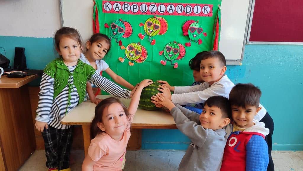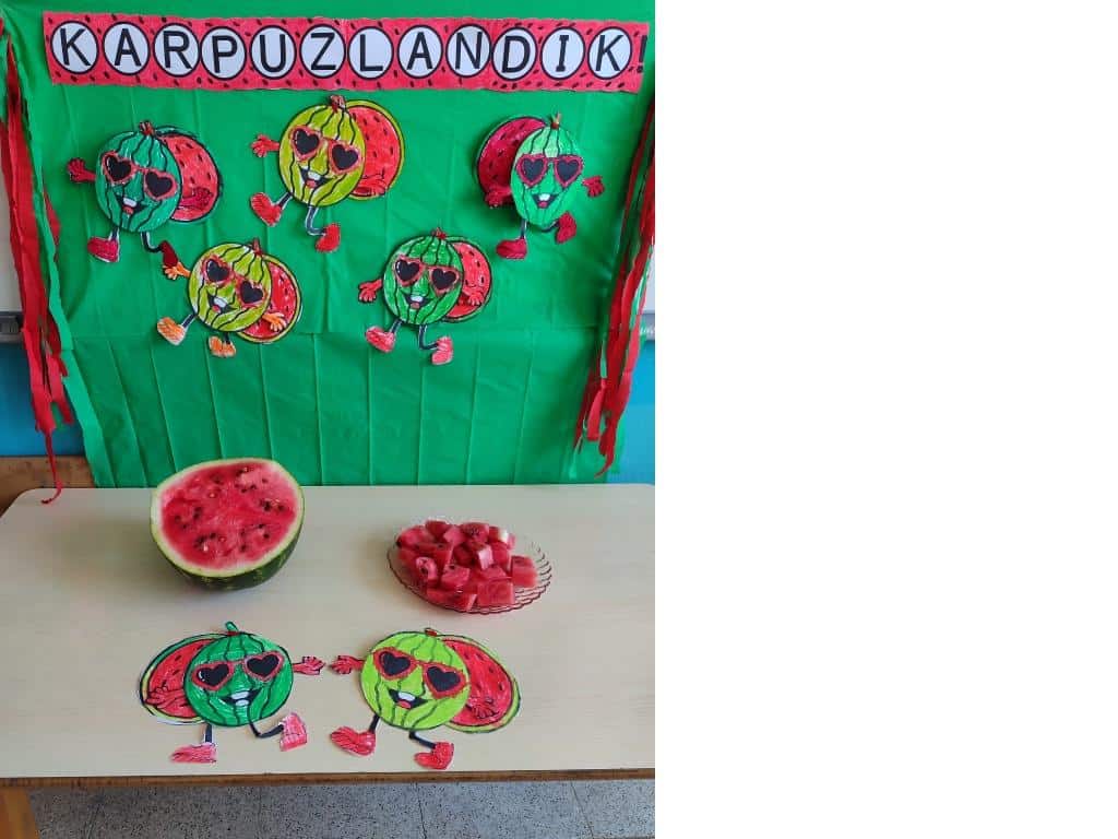 "Bugün sınıfımızda hem eğlendik hem de öğrendik. Yaz meyvelerini tanıdık, parça-bütün kavramını pekiştirdik ve karpuzlarımızı afiyetle yedik. Hem lezzetli hem de öğretici birgün oldu! "